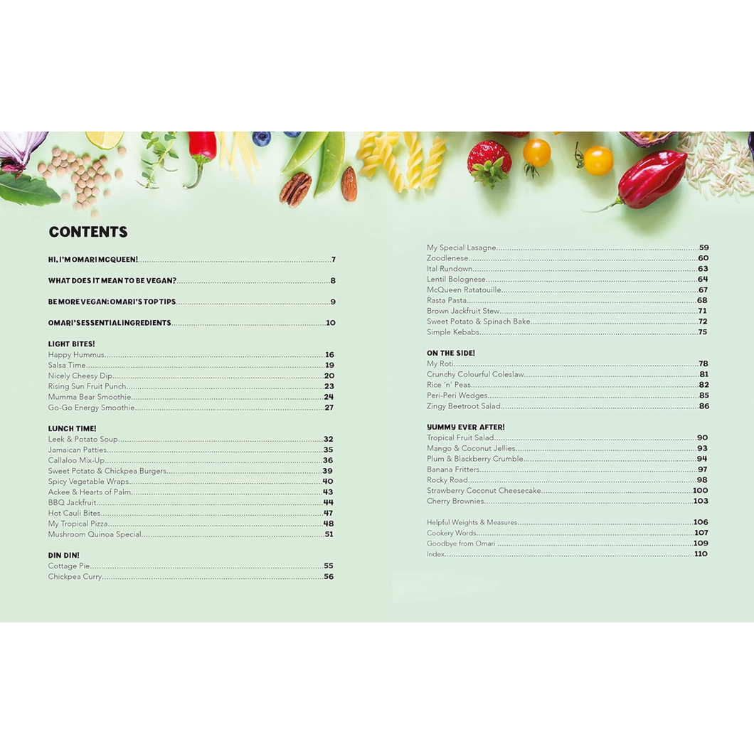 From the star of TV's What's Cooking, Omari? comes a cookbook full of delicious vegan recipes, for young and old. Get cooking with the UK's youngest, award-winning vegan chef, Omari McQueen. Learn how to make over 35 plant-based recipes from pizza to pasta, snacks to smoothies.