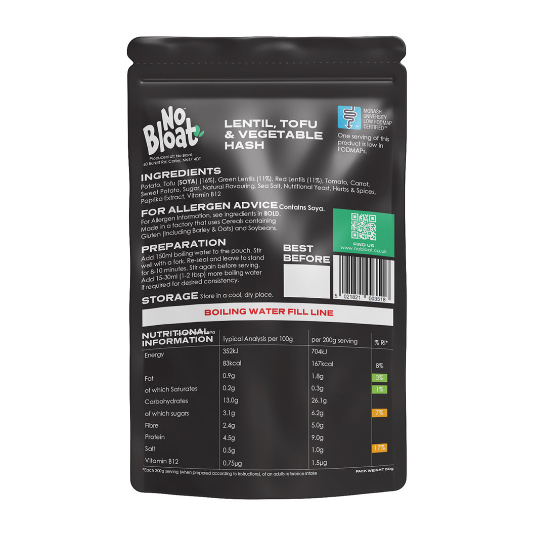 Potato, Tofu (SOYA) (16%), Green Lentils (11%), Red Lentils (11%), Tomato, Carrot, Sweet Potato, Sugar, Natural Flavouring, Sea Salt, Nutritional Yeast, Herbs & Spices, Paprika Extract, Vitamin B12