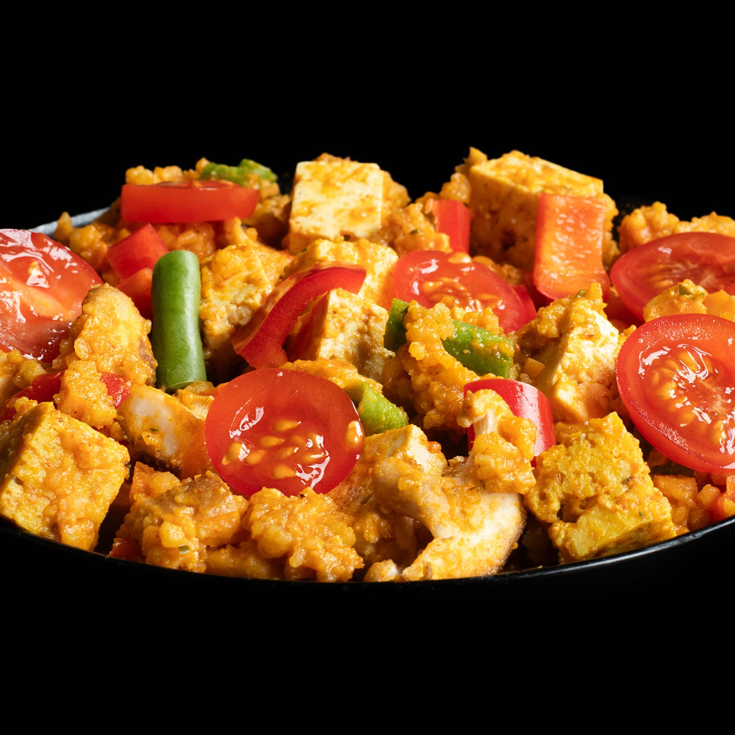 Rice, Coconut Milk Powder, Tofu (SOYA) (15%), Tomato, Sweet Potato, Carrot, Herbs & Spices, Sugar, Natural Flavouring, Green Beans, Potato, Nutritional Yeast, Tamari SOY Sauce Powder, Sea Salt, Paprika Extract, Vitamin B12
